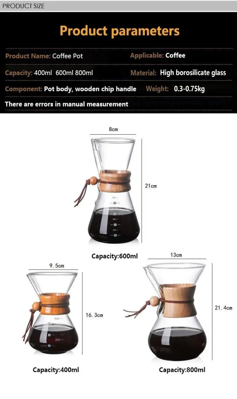 • Hand-brewed coffee :Enjoy a fresh and delicious cup of coffee brewed by hand with this glass pot set.