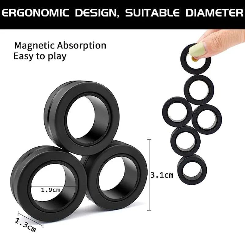3 PCS Fingertip Magnetic Rings Fidget Toys for Adult Anxiety Relief Decompression Finger Magnetic Ring Funny Gifts for Kids