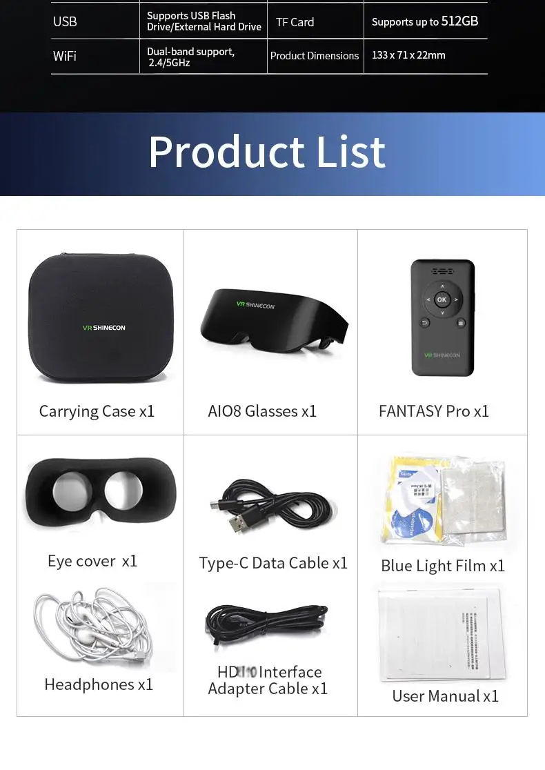 VR head set HD Movie Mobile Smart Screen Android WIFI 3D visor 4K VR Glasses Portable Adult Smart AR Glasses AIO8 FANTASY PRO