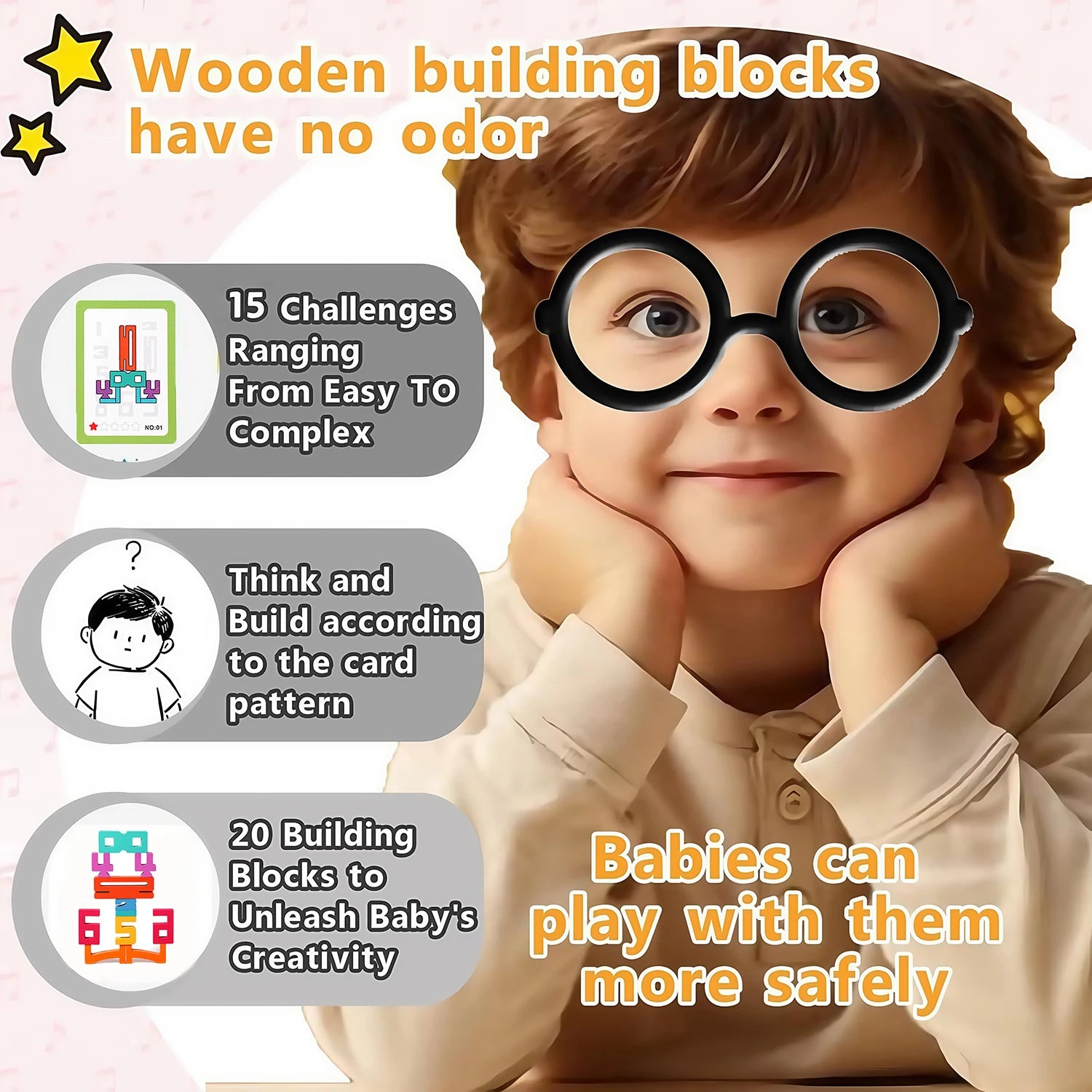 Versatile Play Options: Featuring a total of 20 sturdy blocks and 15 learning cards, this set offers 30 different methods for varying skill levels, promoting creativity as children explore and build